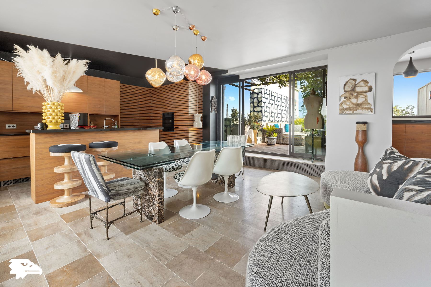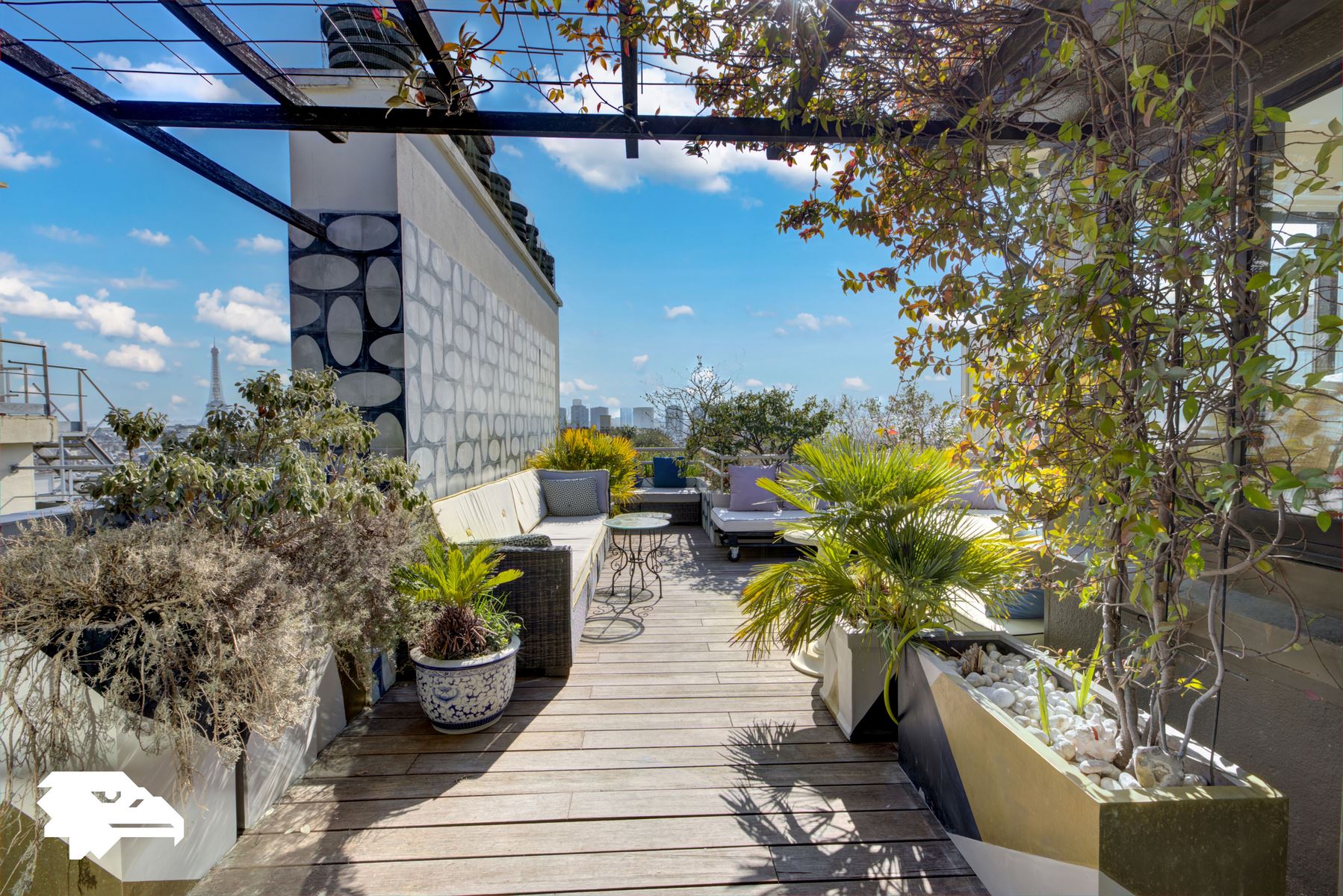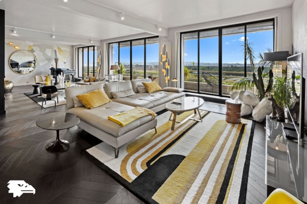 Paris 16ᵉ, quartier Jasmin/Ranelagh, sublime penthouse meublé avec terrasses offrant une vue imprenable sur la Tour Eiffel, sans aucun vis-à-vis. Goldwelling vous propose ce bien d’exception de 271 m² habitables et 120 m² de terrasses, disponible avec une visite virtuelle exclusive. Niché aux derniers étages d’un immeuble récent de grand standing avec gardiennage 24h/24, ce somptueux duplex de 4 chambres conjugue luxe, raffinement et prestations haut de gamme. Le premier niveau s’ouvre sur une élégante entrée menant à une triple réception avec un piano à disposition, un coin bureau et un balcon filant. Trois chambres, dont deux avec salle de douche et WC, ainsi qu’un hammam avec douche et WC complètent cet espace. À l’étage supérieur, une somptueuse master suite avec climatisation, dressing et salle de douche s’accompagne de WC séparés et d’une cuisine ouverte sur une salle à manger, donnant accès à deux vastes terrasses. L’une offre une vue spectaculaire sur la Tour Eiffel, tandis que l’autre dévoile un panorama unique sur le Bois de Boulogne, l’hippodrome d’Auteuil et la skyline de La Défense. Rénové et décoré avec un soin extrême par une décoratrice de renom, ce bien associe matériaux nobles, mobilier d’exception et prestations raffinées. Son exposition Est/Ouest, ses volumes généreux, sa belle hauteur sous plafond, son parquet élégant et sa cheminée lui confèrent un caractère unique. Un box en sous-sol pouvant accueillir une grande voiture complète ce bien d’exception. Possibilité de louer en supplément un studio de service avec douche. Loyer mensuel charges incluses : 23000 €. Loyer hors charges : 21000 €. Charges mensuelles : 2000 €, appelées mensuellement et révisables annuellement en fonction des comptes de copropriété validés en assemblée. Honoraires à la charge du locataire pour un bail régi par le Code Civil (habitation secondaire, logement de fonction, bail société pour l’usage d’habitation par un mandataire social ou un collaborateur) : 12 % TTC du loyer annuel. Locations de courte et moyenne durée possibles avec ajustement des tarifs et honoraires. Pour un bail en résidence principale selon la loi ALUR, nous consulter. Les informations sur les risques auxquels ce bien est exposé sont disponibles sur le site Géorisques : www.georisques.gouv.fr. Le négociateur agit sous le statut d’agent commercial, immatriculé au RSAC de Nanterre sous le numéro 491 627 741. Plus de détails, photos HD et visites virtuelles à 360° disponibles sur le site de l’Agence.
